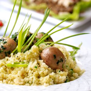 Kada je pirinač gotov, procedite višak vode i dodajte pečurke sa lukom. Dobro promešajte.