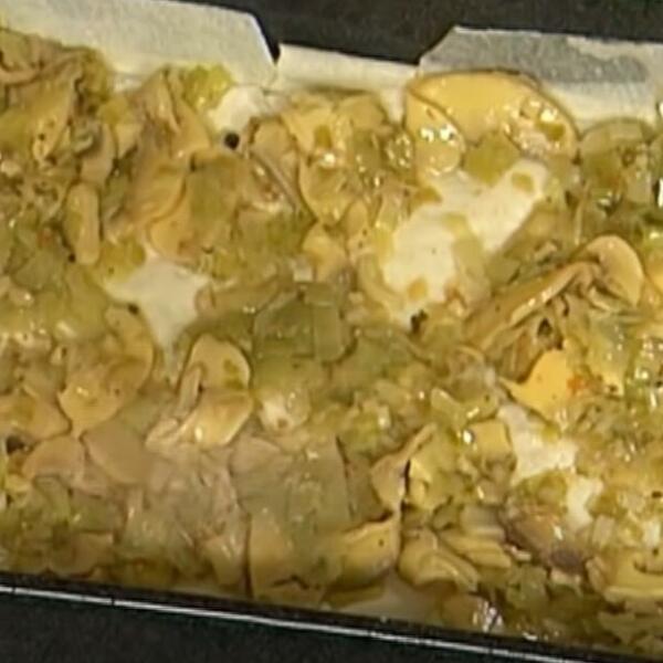 Stavite par kapi ulja u tiganj koji ne zagoreva pa onda dodajte praziluk, kada se praziluk blago isprži da postane proziran, tada je pravo vreme da u tiganj stavite listiće šampinjona.