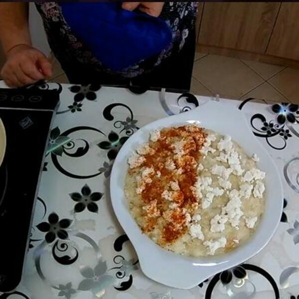 Izlomite na komade kravlji ili ovčiji sir. Ko voli može i kozji sir. Na 2dl vode i oko 300 grama hleba, potrebno je oko 150 grama sira.