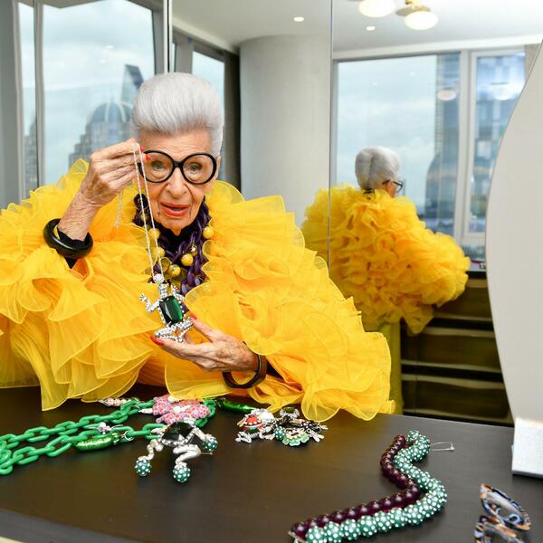 Ajris Epfel ima 100 godina, poznata po šarenim kombinacijama, prenaglašenom nakitu i predimanzironiranim naočarama i kaže da se ne oblači da bi je neko video, već se oblači sama za sebe.