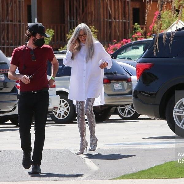 Dajen Kiton (75), slavna glumica, nedavno je fotografisana u Kaliforniji na jednom snimanju. Paparaci su je uhvatili u širokoj beloj košulji koju je nosila umesto haljine, dok je umesto pantalona imala duboke čizme sa zmijskim printom i vrtoglavo visokim potpeticama.
