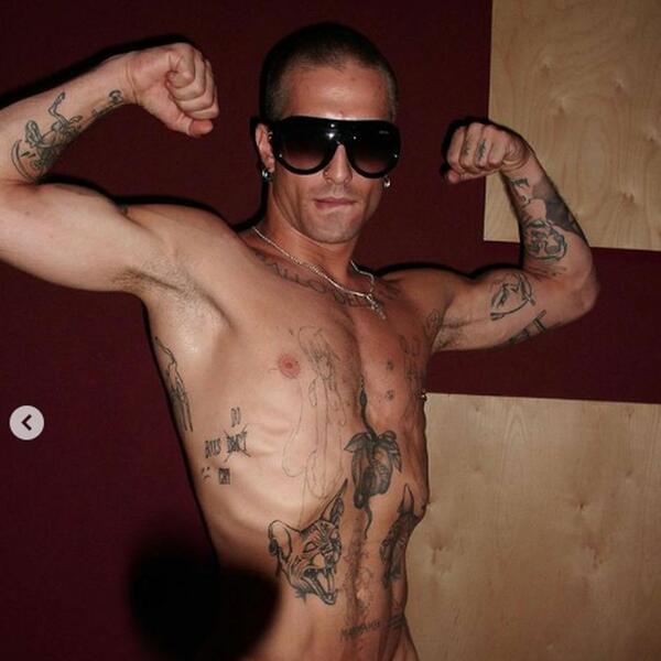 Damjano je pozirao sa rukama uvis, a intimni deo je osoba iza kamere sakrila samo lizalicom u obliku srca.