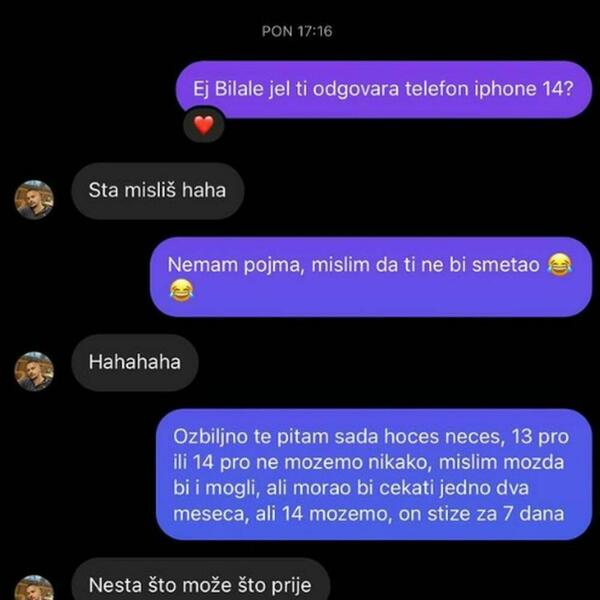 Naime, ona je sa njim nedavno raskinula, a potom je putem Instagrama otkrila da je Bilal najpre tražio telefon od fanova, nakon čega je objavila i prepisuku koja to navodno potvđuje.