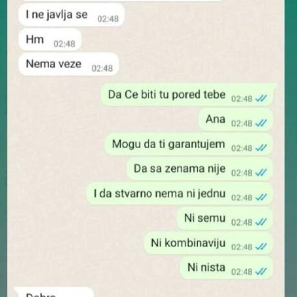 - Nijedne sekunde nije rekao: "Ne zanimaš me, nego je rekao da je on uvek tu". Ali otišao od mene, ja ga pozvala i ne javlja se. Hm. Nema veze - napisala je Ana.