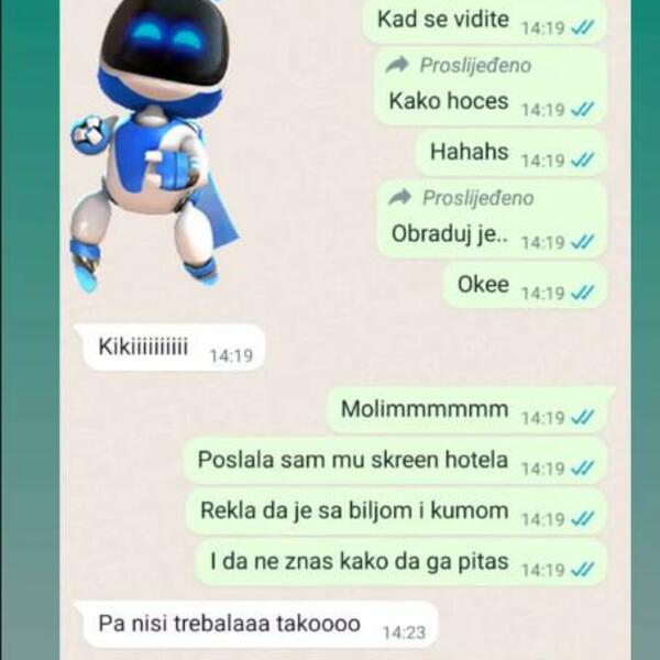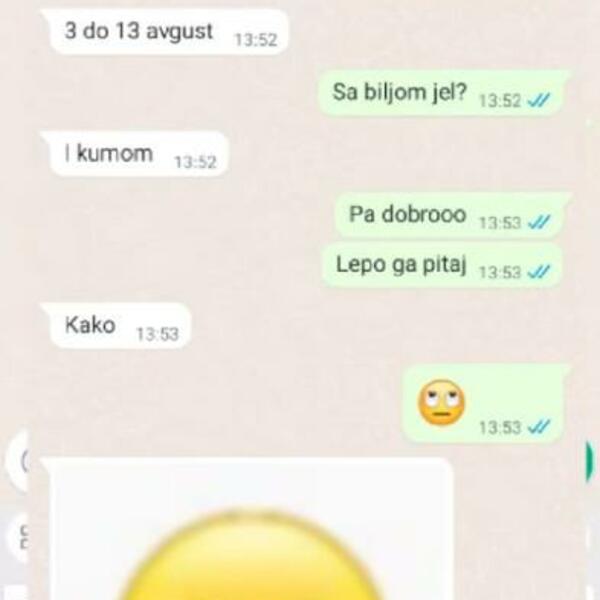 - Poslala sam mu skrinšot hotela, rekla da je sa Biljom i kumom i da ne znaš kako da ga pitaš.