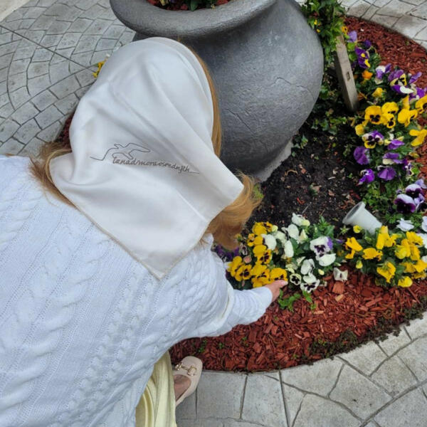 Večita devojčica odabrala je nežni prolećni stajling – svetložuta suknja, beli džemper, marama u stilu pedesetih godina prošlog veka sa nacrtanim galebom na zadnjem delu i natpisom “Iznad mora osrednjih”. Društvo joj je pravilo tek procvalo cveće.