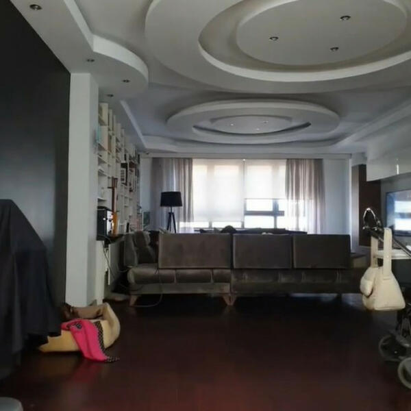 U ogromnoj svetloj dnevnoj sobi, sa jedne strane zida nalazi se velika polica napunjena knjigama, dok je na drugoj televizor. Tu je i nameštaj za sedenje i ručavanje, a na plafonu sa specijalnim radom se nalaze led sijalice.
