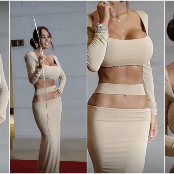 Haljina sa prorezima na stomaku i dubokim dekolteom oduševila je sve prisutne, a starleta je pokazala izvajanu liniju.