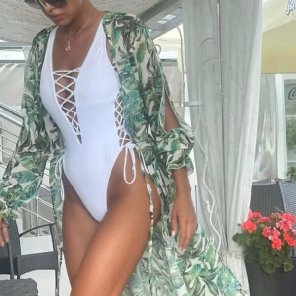 Ana Grozdanović se snimala na ležaljci u jednodelnom belom kostimu koji je istakao njenu neverovatnu figuru.