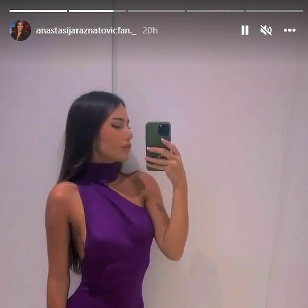 Anastasija se usnimila u dugoj, ljubičastoj haljini, koja je pratila liniju njenog zgodnog tela i istakla sve atribute.