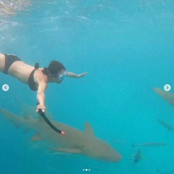 Međutim, kako bi svoje letovanje učinila posebnim, odlučila se za aktivnosnt koja je svojstvena samo najhrabijima, pa je tako zaplivala sa ajkulama, a ovu scenu zabeležila je kamerom.