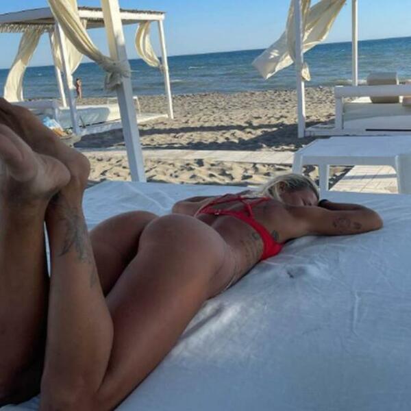 Na novim slikama Milica pozira toples dok je jača polovina drži za ruku, a u prvom planu je njena zadnjica u tanga bikiniju, koju ističe kad god za to ima priliku.