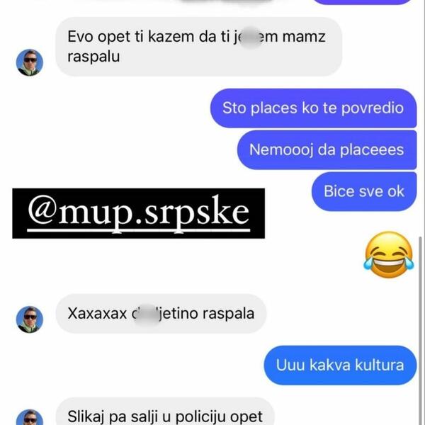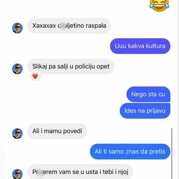 - Ali ti znaš samo da pretiš. Malo su te mlatili - napisala je ona.