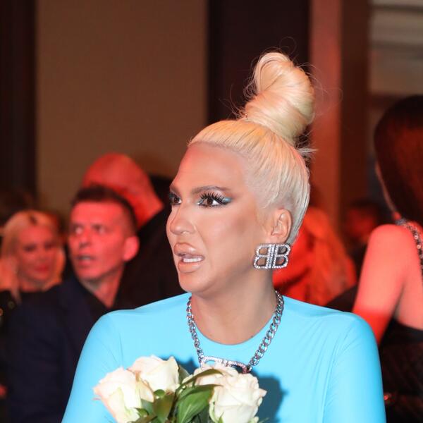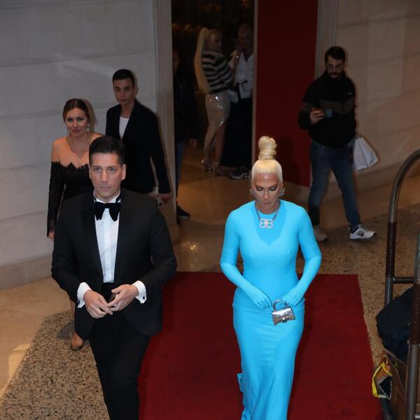 Karleuša je izabrala dugu, usku, kao nebo plavu balenciag haljinu od 3.500 dolara, čuzme u istoj marki od 2.190 dolara, tašnicu 1.550 dolara.