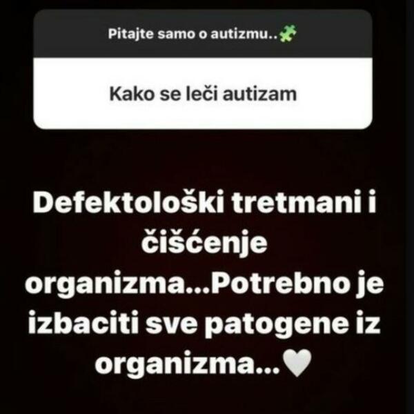 - Taj autizam je verovatno vaša karta za večan život. Autistična deca uz posvećene roditelje žive kao u raju, ne znaju šta je svađa, šta su problemi, ljubomora. Svakako sadašnje stanje vašeg sina nije konačno stanje, imate život pred sobom za borbu i napredak.