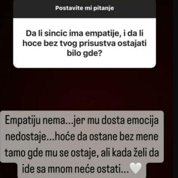 Jelena je potom otkrila da li njen sin ima empatiju i da li pristaje da ostane bez nje.