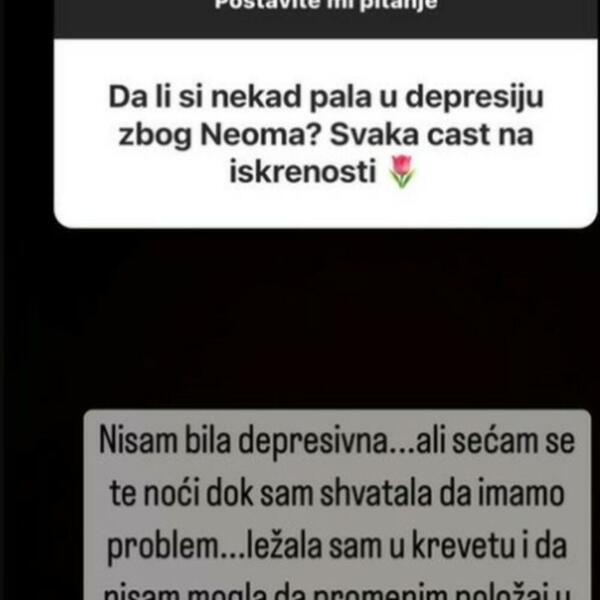 - Nisam bila depresivna, ali sećam se te noći dok sam shvatala da imamo problem... Ležala sam u krevetu i da nisam mogla da promenim položaj u kom ležim iako mi je bilo neudobno. Užas, prošlo je.