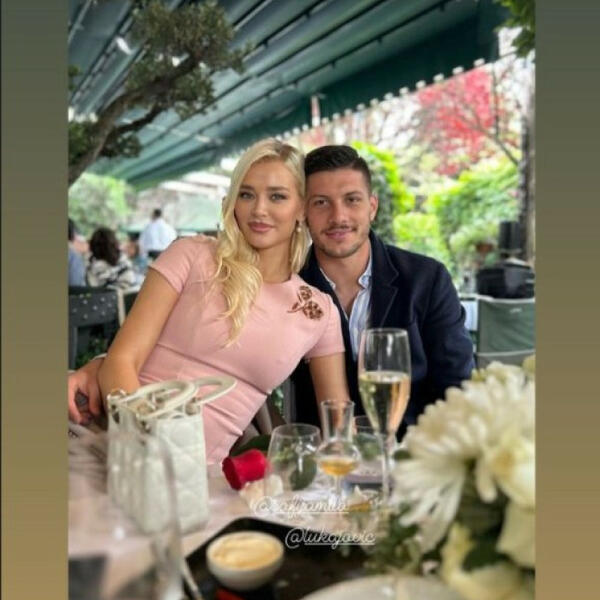 Očekivano, njen izabranik, fudbaler Luka Jović, prisustvovao je krštenju, kao i svečanom ručku. On je nosio plavu košulju na pruge i klasično odelo za ovu priliku.