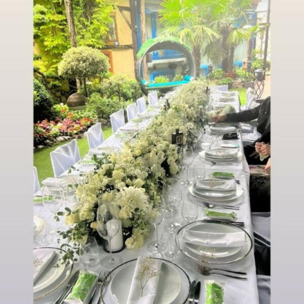 Kada je krštenje završeno, Sofija je odvela svoje najbliže da proslave u jednom poznatom prestoničkom restoranu, gde ih je dočekala prelepa dekoracija u belim nijansama, a cvetni aranžman nikog nije ostavio ravnodušnim.