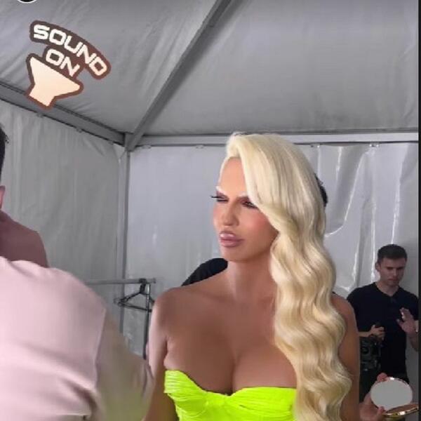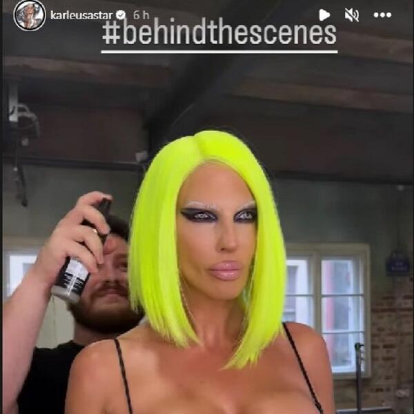 Pored toga, Jelena je pokazala i druge stajlinge u kojima se snimala i slikala, poput crnog veša od lateksa i čizama koje su joj do bokova. I tu je nosila sličnu periku fluorescentne boje, a oko nje su sev vreme bili saradnici koji su joj popravljali šminku i frizuru.