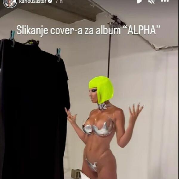 Ona je objavila kratak video sa snimanja za naslovnu stranu albuma alfa, na kojima pozira sa srebrnim donjim vešom, kao i čizmama napravljenim u istoj boji, ali i sa delićima koji podsećaju na gledalo. Pored toga, tu je i zelena perika koja joj odlično pristaje.