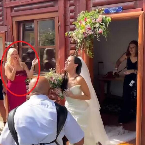 Mirjana je bila u crvenoj haljini, a osmeh nije skidala sa lica. Na jednom od snimaka, vidi se kako stoji sa strane dok Maša izlazi iz kuće.