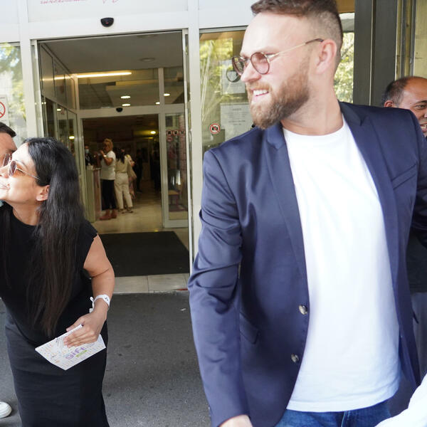 Danijel Alibabić stigao je u porodilište "Narodni front" kako bi svoju suprugu Bibu i ćerku, koja se rodila u ponedeljak, izveo iz porodilišta.