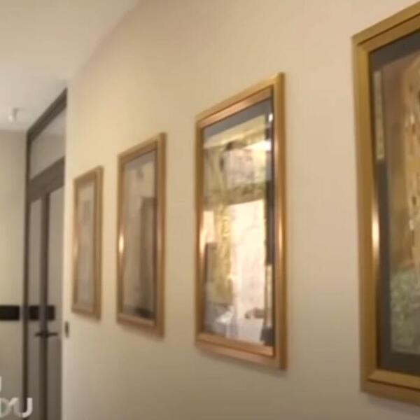 Prvo su kamere usnimile moćan hodnik, po čijim zidovima su zakačene moderne slike u zlatnim ramovima.
