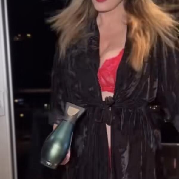 Ona je prvo pokazala kako sređuje kosu, dok se ispod mantila nazirao crveni veš.
