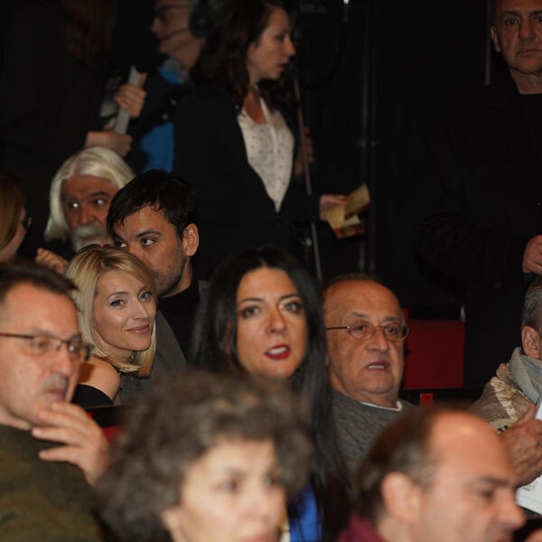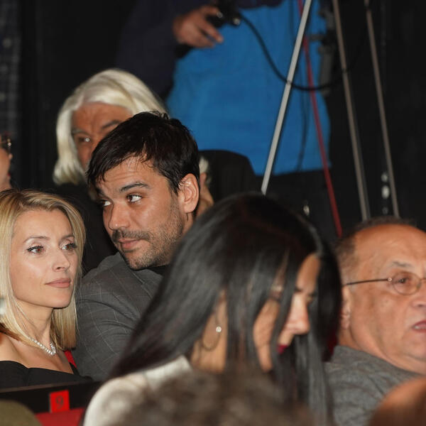 Među njima su se našli i novopečeni bračni par, glumica Anđelka Prpić i Marko Žugić, koji su iskoristili vreme pre početka predstave da razmenjuju nežnosti.