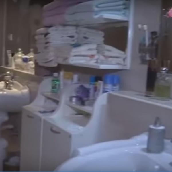 I kupatilo, koje je u belo-oker nijansama, je veoma prostrano. Primetno je da je kada veoma velika, kao i da se oko nje nalaze dva stuba u grčkom stilu koji daju posebnu notu celoj prostoriji, dok se na policama vidi veliki broj peškira.