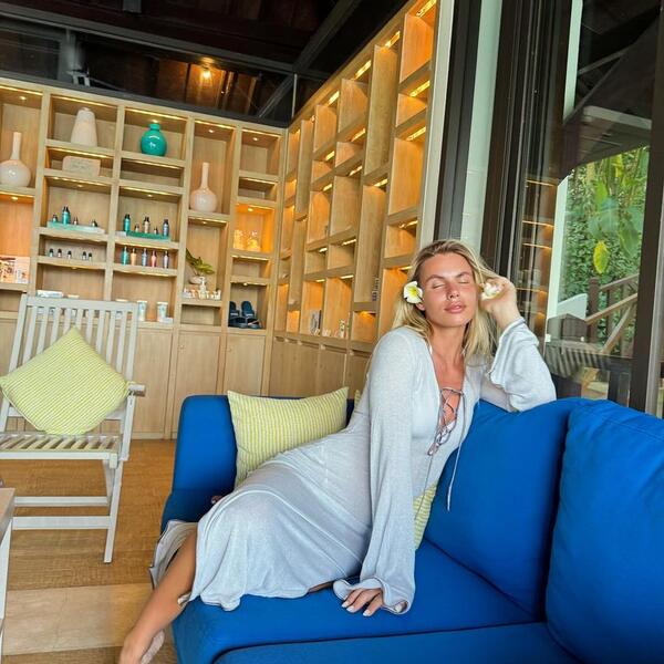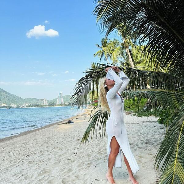 Ona je pozirala na ljuljašci u nežnoj beloj haljini, a preplanuli ten je istakao njenu plavu kosu i lepo lice.