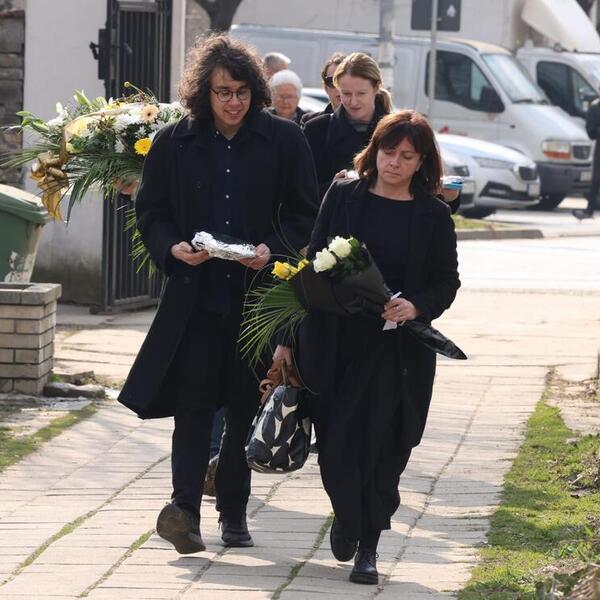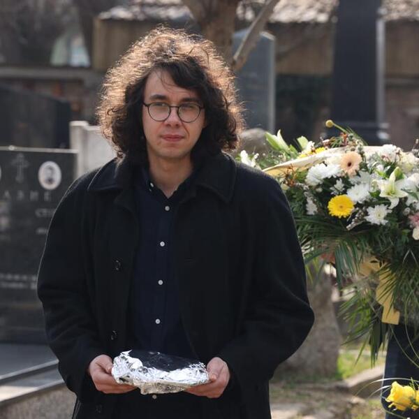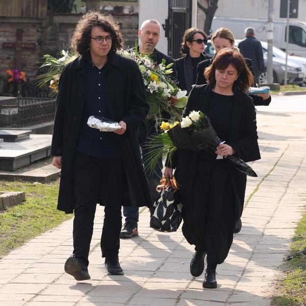 Gavrilo, sin Nebojše Glogovca, došao je na groblje sa svojom tetkom Bojanom, inače rođenom sestrom pokojnog glumca.