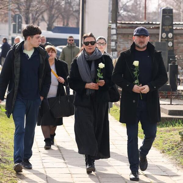 Na sahranu je došla i Mina, prva supruga pokojnog glumca Nebojše Glogovca, s kojom ima dva sina - Gavrila i Miloša, koji su takođe na dedinom poslednjem ispraćaju.