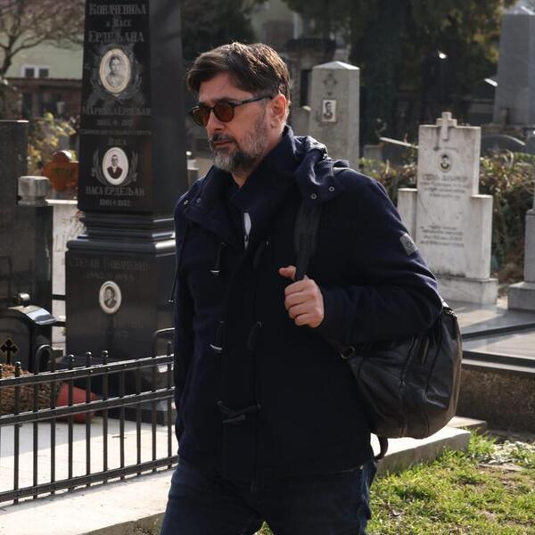Vojin Ćetković, kum, kolega i najbolji prijatelj pokojnog glumca došao je vidno potresen odlaskom Milovana Glogovca, a tugu u očima sakrio je iza naočara za sunce.