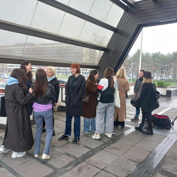 Anđela Jovanović dočekana je aplauzom brojnih kolega koje su došle da je podrže ispred Prvog osnovnog suda u Beogradu .