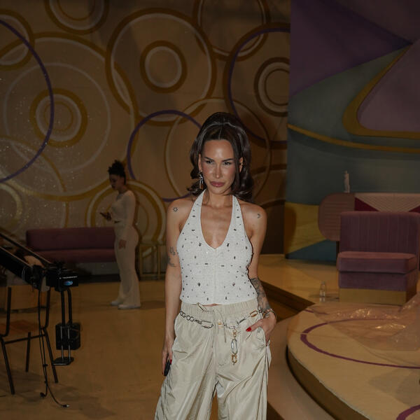 Niki je bila u krem kombinaciji. Uski top ispod kog nije nosila brushalter, džakaste pantalone i visoke platforme su bile njen izbor za ovo pojavljivanje. Veliki broj komplimenata je pokupila i na račun frizure koja je izgledala veoma glamurozno.