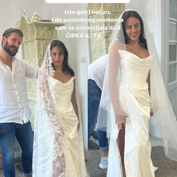 Venčanicu potpisuje domaći dizajner, dok je drugu haljinu koju je nosila tog dana, Maša pronašla u prodavnici polovne robe.