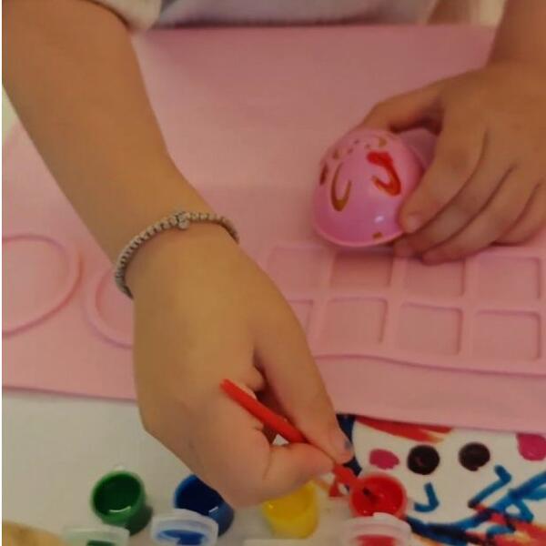 Pripremila je razne boje, kalup za jaja sa prorezima u obliku zeca, i posvetila se ukrašavanju.