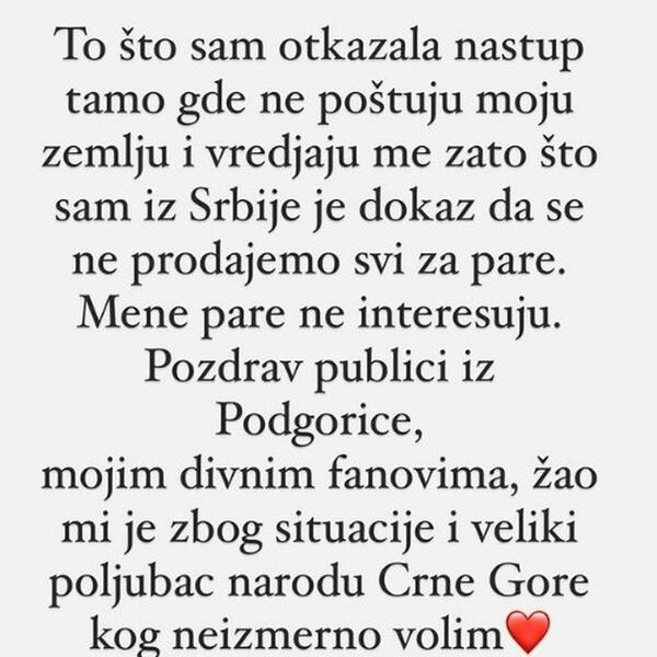 Podsetimo, objava koja je izazvala skandal na Balkanu je ona koju je Jelena posvetila Crnogorcima. Njenu objavu prenosimo u celosti: