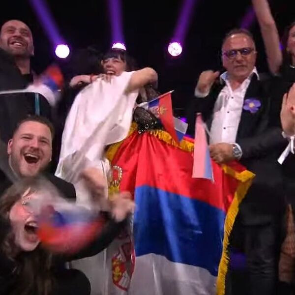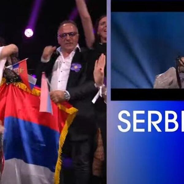 Teodora je od uzbuđenja vrištala i mahala srpskom zastavom, a potom je zagrlila koleginicu i prijateljicu Anu Đurić Konstraktu, koja nas je 2022. godine takođe predstavljala na Evroviziji.