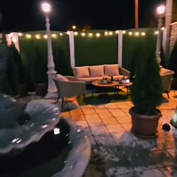 Ni dvorište nije ništa manje pompeznije, pa su na svakom koraku ukrasne figure, statue i fontana ispred kuće.
