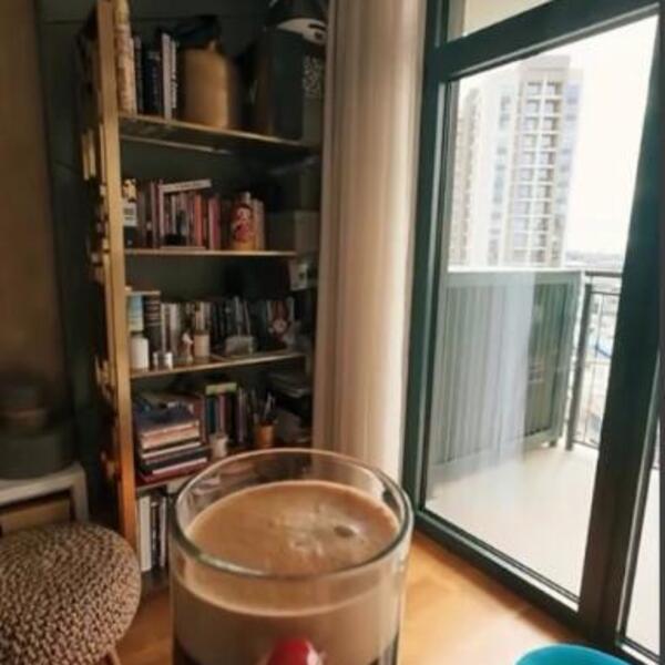 U dnevnoj sobi dominira velika tirkizna fotelja sa zlatnim nogicama koja, čini se, ima glavnu ulogu u ovom domu. Zlatni detalji nalaze se u čitavom stanu, od lustera, preko stočića do zanimljivih figura na zidovima, a tik pored vrata od terase nalazi se velika polica prepuna knjiga i drugih raznih sitnica.