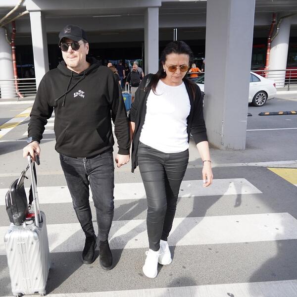 Aco i Biljana su bili ležerno obučeni, baš kako i treba kada se putuje avionom.