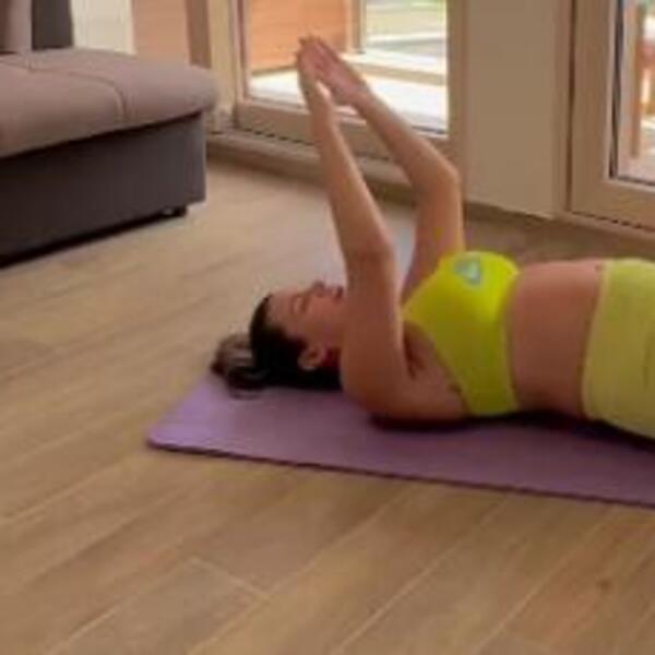 Pevačica je pokazala kako radi seriju vežbi na strunjači u dnevnoj sobi. Kako nema sprave kao u teretani, Rialda je svoj trening prilagodila kućnim uslovima i poslužila se stolicom kako bi lakše sprovela jednu od vežbi.