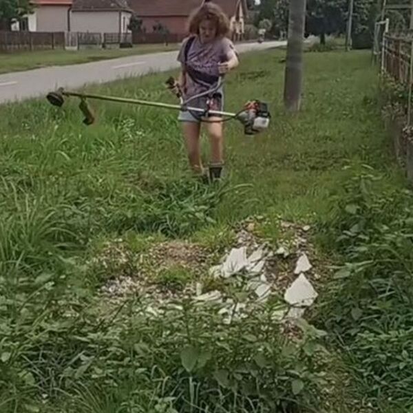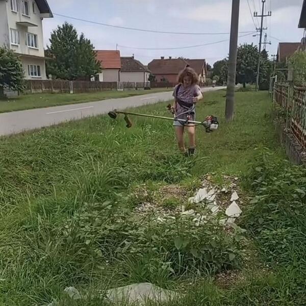 Pevačica Slavica Ćukteraš odlučila je da sredi dvorište kuće, pa se uhvatila kose i pokosila travu.