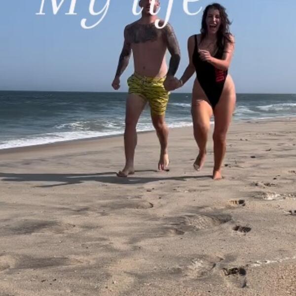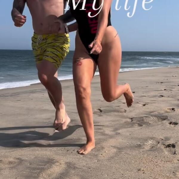 Par se držao za ruke i trčao po pesku, a tom prilikom Dalila je bila u jednodelnom kupaćem kostimu.