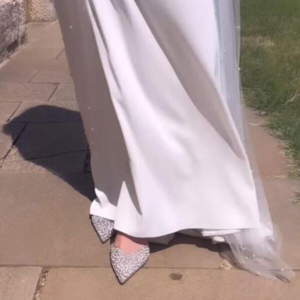 Cipele koje je izabrala za ovu priliku bile su šljokičave a jednostavan veo bio je iste dužine kao i haljina koji je na sebi imao tek po neki umetnuti biser.