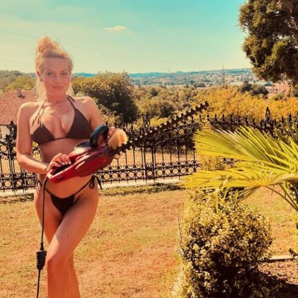 Ivana Panzalović pokazala je da je vešta sa baštenskim poslovima, a sve je iznenadilo što je živu ogradu orezivala u minijaturnom bikiniju.