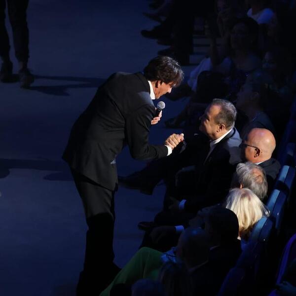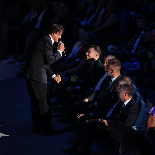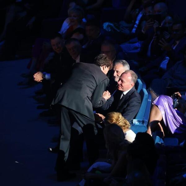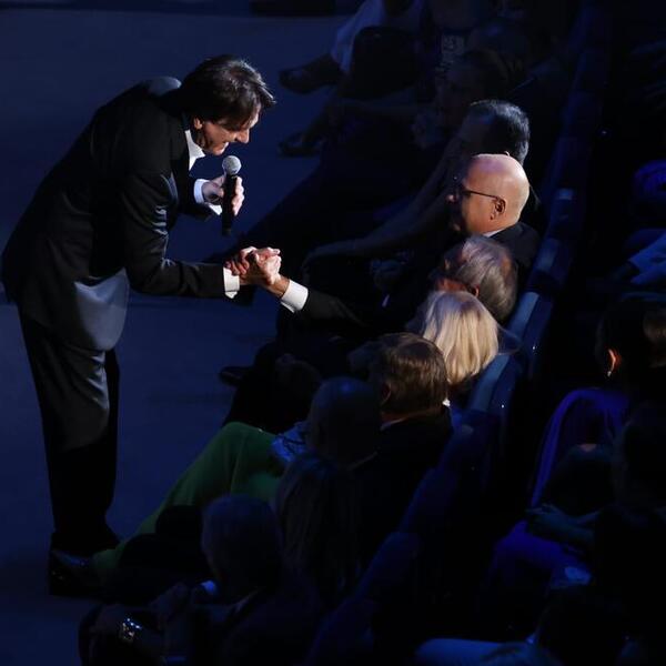 Nakon što je zapevao, on je sišao u prvi red i pozdravio sve one koji su sedeli, a damama je čak i poljubio ruku.